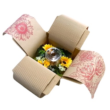 1.緩衝材にも輸送箱の代わりにもなる「梱包革命」 クッション性に優れているので大切な中身をしっかり守ってくれるだけでなく、片面ダンボールの特徴である波形の構造がクッションの役割を果たし、衝撃を受けてその波形が潰れることで、力を吸収・分散し中身へのダメージを軽減します。またデザイン性の高い梱包材としての役割も果たすため、包装した後はそのまま発送することも可能です。